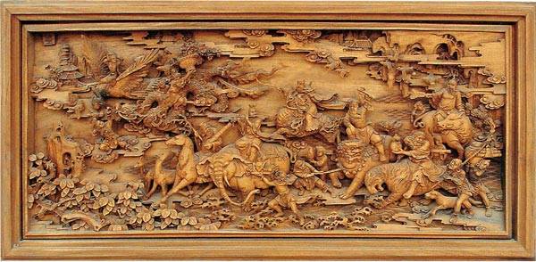 我國的木雕藝術起源于新石器時期,到了秦漢兩代,木雕工藝已漸漸趨于成熟,繪畫、雕刻技術精致完美。唐代是中國工藝技術大放光彩的時期,木雕工藝也日趨完美。許多保存至今的木雕佛像,是中國古代藝術品中的杰作,具有造型凝練、刀法熟練流暢、線條清晰明快的工藝特點,成為當今海內(nèi)外藝術市場上的“寵兒”。明清時代的木雕品題材,多見為生活風俗、神話故事,諸如吉慶有余、五谷豐登、龍鳳呈祥、平安如意、松鶴延年等木雕作品,深受當時社會歡迎。