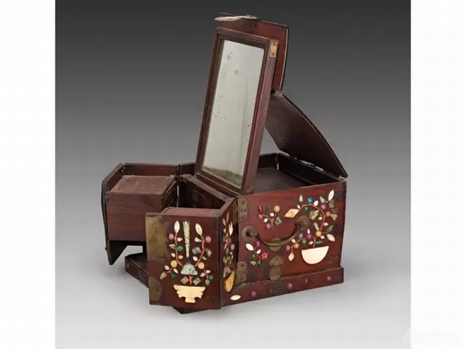 梳妝打扮是上至太后妃嬪,下至小家碧玉都喜愛的一種本能。而作為皇室,太后、妃嬪們所用的器物又更高端的多。北齊的胡太后,讓沙門靈昭,制造了七寶鏡臺,三十六個門戶各有一婦人,手中各自拿著鎖匙,只要輕碰其中一個門戶,這三十六戶一時全都自行關(guān)閉;若抽出其中一關(guān)的鎖匙,那么其余諸門,盡皆開啟,婦人都出現(xiàn)戶前站立。唐朝的馬登封也曾為皇后制妝臺,進(jìn)退、開合全自動,都不須人力,巾櫛(梳篦的總稱)、香粉,依次遞送、循序進(jìn)獻(xiàn)??匆姷娜耍颊J(rèn)為是鬼斧神工。