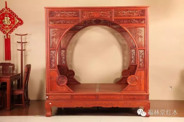 三、架子床:架子床,紅木家具傳統(tǒng)臥具。根據(jù)其設(shè)計(jì)的不同,可分為:四柱床和六柱床。它式樣頗多,結(jié)構(gòu)精巧,裝飾華美,多以歷史故事、民間傳說、花馬山水等為題材,含和諧、平安、吉祥、多福、多子等寓意。其風(fēng)格古樸大方,堂皇富麗。我們福林堂紅木在挖掘古典架子床的基礎(chǔ)上,嚴(yán)格遵循中式家具榫卯要求的基礎(chǔ)上推出福典系列架子床,在型、藝、韻各方面堪稱經(jīng)典。
