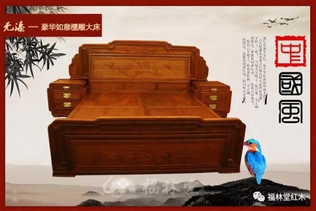 福林堂紅木—緬甸花梨木精品—國(guó)色天香大床